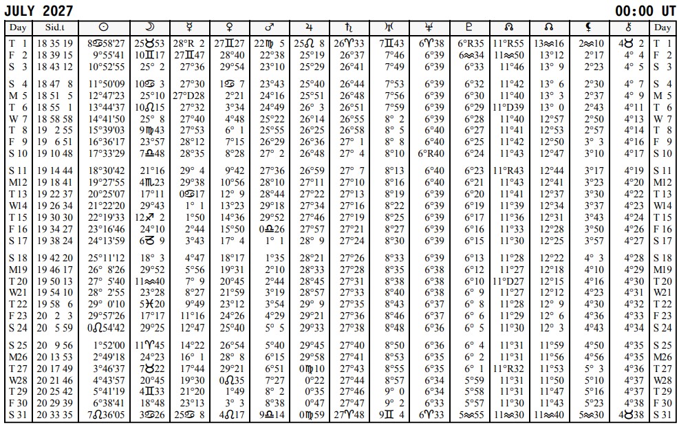 An ephemeris is a reference book showing precisely when certain celestial bodies locations occurs. Modern ephemeris are calculated where the motion of a solar system bodies has been evolved, based on observations.